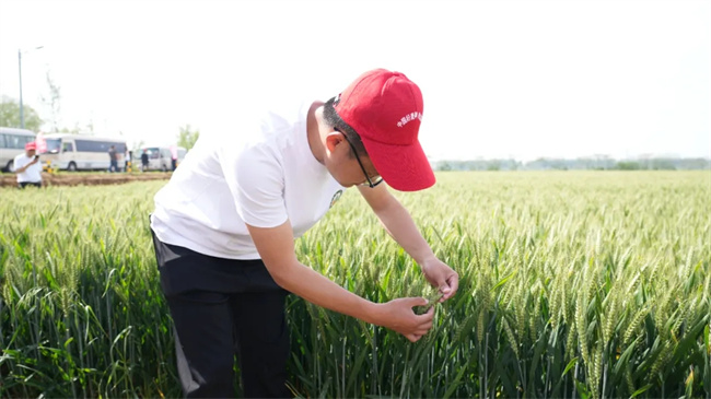 會(huì)議期間,與會(huì)人員深入輪選145麥田。技術(shù)人員結(jié)合自然氣候特點(diǎn),就小麥新品種特征特性、熟期、產(chǎn)量、品質(zhì)、抗逆性及新品種應(yīng)用、新技術(shù)推廣工作等方面進(jìn)行了詳細(xì)講解。與會(huì)人員認(rèn)真對(duì)照觀(guān)察并針對(duì)小麥的整齊度、抗病性、抗倒性、抗早衰等綜合性狀進(jìn)行了現(xiàn)場(chǎng)討論。