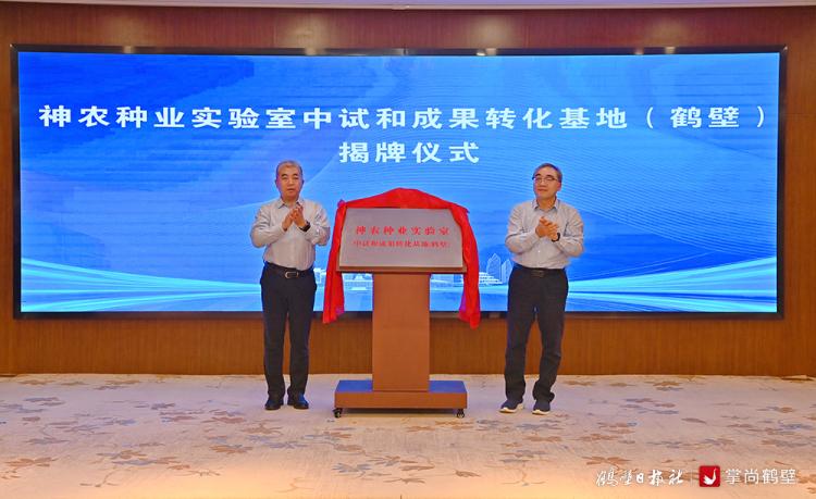 【鶴壁新聞網(wǎng)訊-鶴壁日?qǐng)?bào)社記者 朱向陽/文 張寧/圖】5月14日上午,神農(nóng)種業(yè)實(shí)驗(yàn)室中試和成果轉(zhuǎn)化基地(鶴壁)揭牌暨科企合作項(xiàng)目簽約儀式在鶴壁迎賓花園舉行。中國(guó)工程院院士、省農(nóng)業(yè)科學(xué)院院長(zhǎng)、神農(nóng)種業(yè)實(shí)驗(yàn)室主任張新友,省農(nóng)業(yè)農(nóng)村廳一級(jí)巡視員凌中南,河南農(nóng)業(yè)大學(xué)副校長(zhǎng)、神農(nóng)種業(yè)實(shí)驗(yàn)室副主任湯繼華;市委書記趙宏宇,市長(zhǎng)李可,市領(lǐng)導(dǎo)王澤華、王強(qiáng)參加。