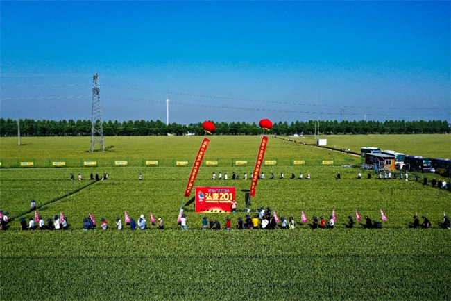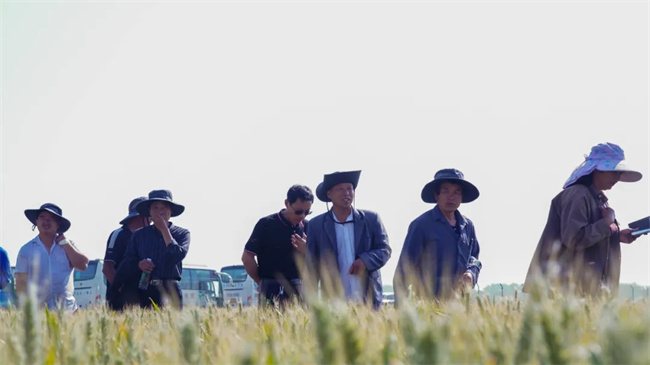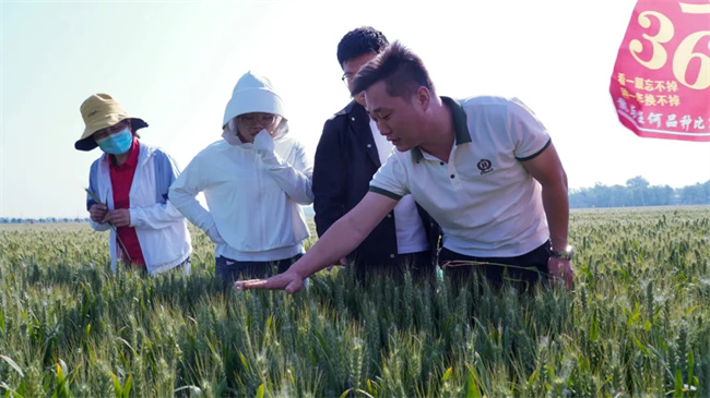 會議期間,參會嘉賓前往弘麥201、弘麥360、濮興11展示基地進行觀摩,并對當前處于灌漿中期的品種表現(xiàn)出綜合優(yōu)勢,一致給予高度評價!