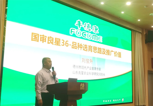 德州市現(xiàn)代產(chǎn)業(yè)首席專家、山東良星農(nóng)業(yè)科學(xué)研究院院長(zhǎng)、良星36的育成人劉俊升以《國(guó)審良星36—品種選育思路及推廣價(jià)值》為題的專題報(bào)告。報(bào)告圍繞近年來氣候特點(diǎn)和耕作模式改變,介紹了良星36的選育目標(biāo)和選育過程。