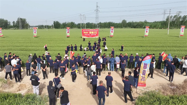 邯麥20觀摩現(xiàn)場,各位合作伙伴再次見證來源于濟麥22優(yōu)勢基因大田綜合表現(xiàn),其農(nóng)藝性狀又超越濟麥22,大家一致認可,并紛紛表示,回去后將積極配合公司,搞好觀摩展示示范工作,落實措施,加大宣傳力度,提高品種在當?shù)赜绊懥Α?/div>