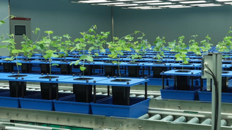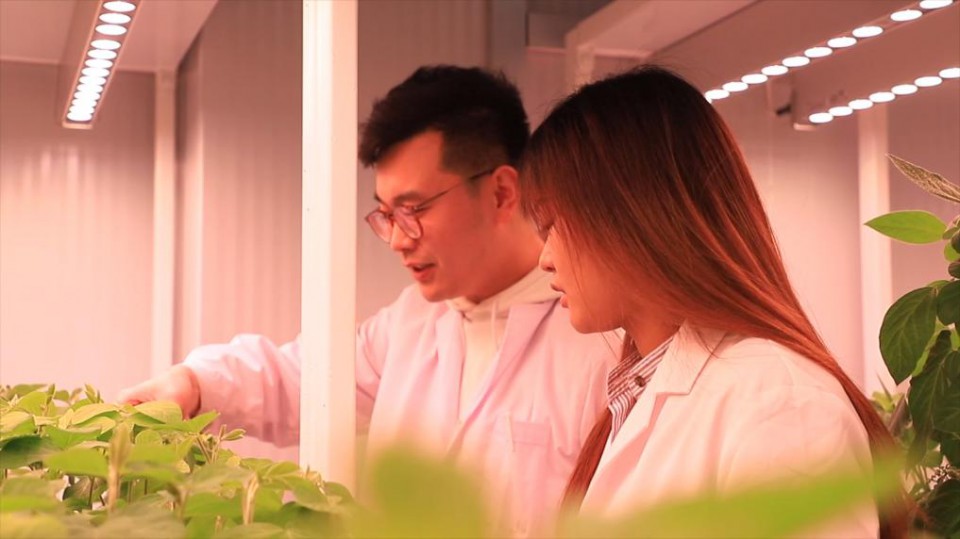 這個(gè)育種實(shí)驗(yàn)室被科學(xué)家稱(chēng)為“育種加速器”。實(shí)驗(yàn)室可以模擬大豆生長(zhǎng)的特定環(huán)境,可將大豆一季生長(zhǎng)時(shí)間從近六個(gè)月縮短至五六十天??茖W(xué)家把分子設(shè)計(jì)育種技術(shù)和“育種加速器”應(yīng)用結(jié)合起來(lái),大大提高了育種效率。