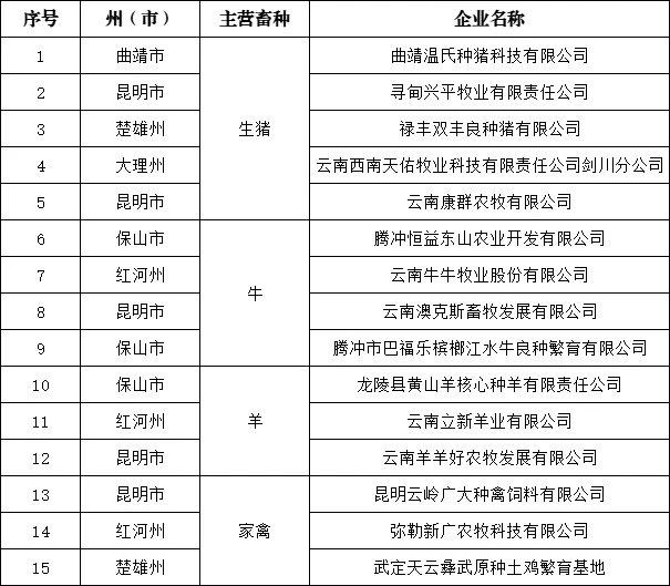 省級(jí)畜禽種業(yè)陣型企業(yè)名單
