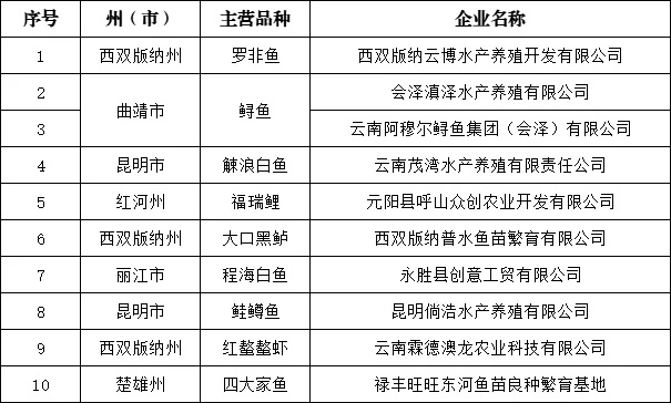 省級(jí)水產(chǎn)種業(yè)陣型企業(yè)名單
