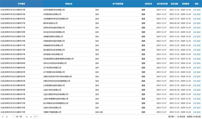 查詢中國種業(yè)大數(shù)據(jù)平臺,截至2024年5月25日,獲得農(nóng)作物種子生產(chǎn)經(jīng)營許可證A證,有效區(qū)域為全國的企業(yè)共有149家。其中,生產(chǎn)經(jīng)營范圍包括玉米的有79家,生產(chǎn)經(jīng)營范圍包括大豆的有5家。所謂A證,即生產(chǎn)經(jīng)營相結(jié)合、有效區(qū)域為全國的育繁推一體化農(nóng)作物種子生產(chǎn)經(jīng)營許可證。
