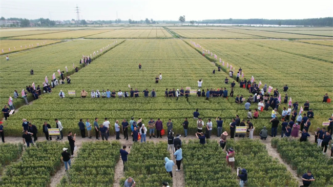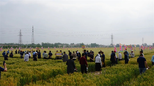會(huì)前,參會(huì)代表觀摩了淮麥33展示田,對(duì)淮麥33的優(yōu)秀表現(xiàn)一致表示高度認(rèn)可,并就下一步如何充分發(fā)揮優(yōu)良品種潛在價(jià)值進(jìn)行交流和探討。