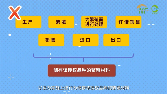 任何單位或者個人未經(jīng)植物新品種權(quán)所有人許可,不得生產(chǎn)、繁殖和為繁殖而進行處理、許諾銷售、銷售、進口、出口以及為實施上述行為儲存該授權(quán)品種的繁殖材料,不得為商業(yè)目的將該授權(quán)品種的繁殖材料重復(fù)使用于生產(chǎn)另一品種的繁殖材料。