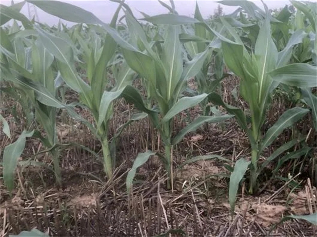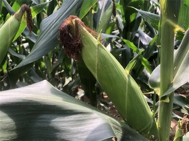 (1)抗逆性強(qiáng),株型緊湊,株高259cm,穗位90cm,全株葉片19-21片,紅軸,果穗筒形,根系發(fā)達(dá),莖稈粗壯韌性強(qiáng),抗倒折能力強(qiáng),在近年的耐高溫?zé)岷完幱旯颜諓毫託夂驐l件下,有著很好結(jié)實性表現(xiàn)。