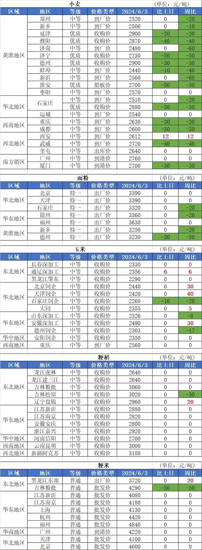 2、6月3日國(guó)內(nèi)玉米偏強(qiáng)震蕩,其中:南方銷區(qū)玉米價(jià)格基本穩(wěn)定;南北港口玉米價(jià)格穩(wěn)中有漲,漲幅10元/噸;東北、華北玉米價(jià)格局部波動(dòng),波動(dòng)幅度在4-30元/噸之間。