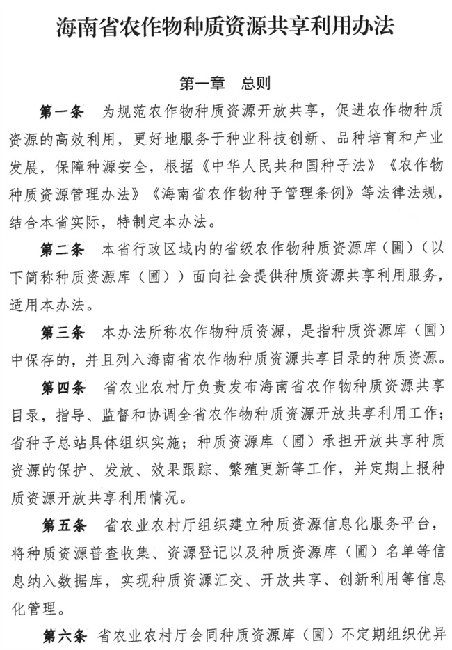 查看或下載《海南省農(nóng)作物種質(zhì)資源共享利用辦法》全文,請點擊下方鏈接