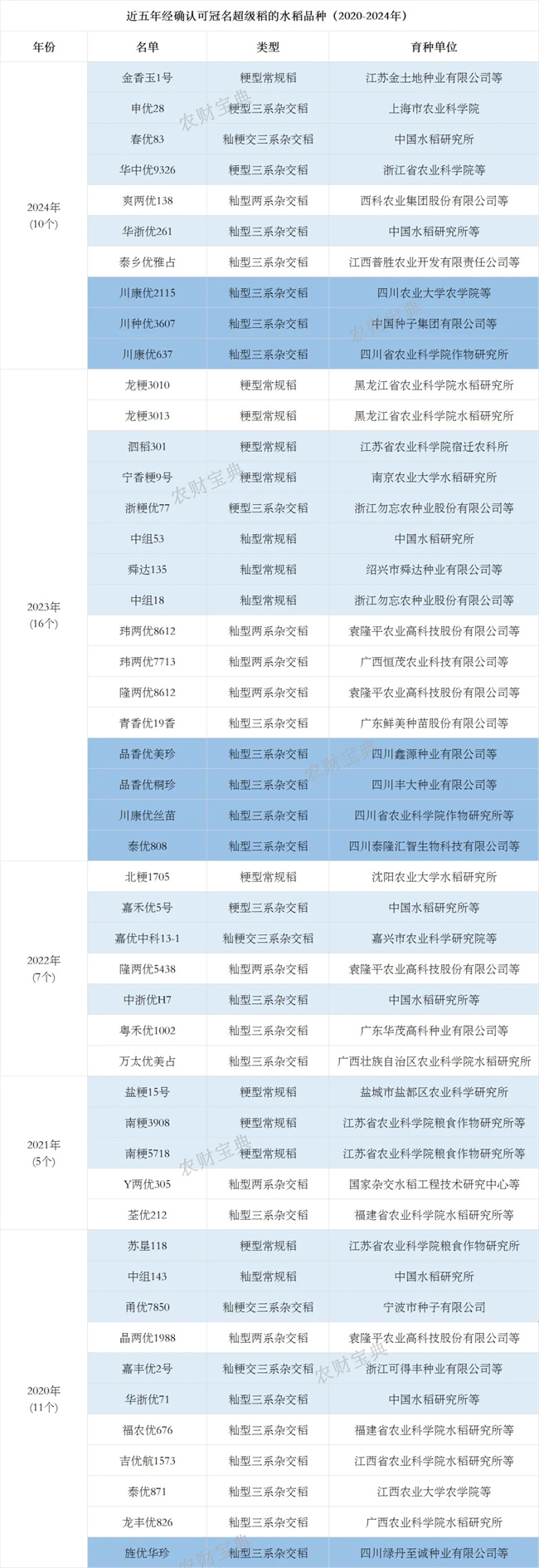 2020-2024年的超級稻品種名單↓↓