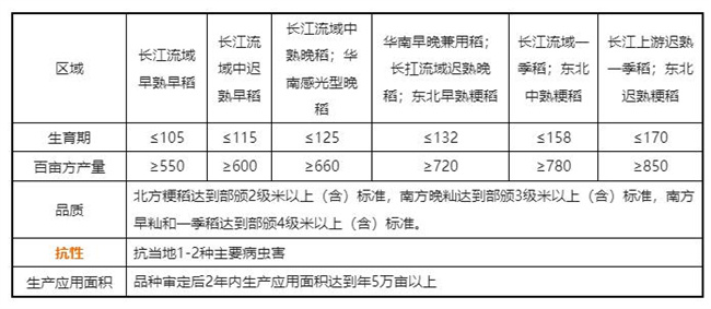 第六條 上表中所列品種的區(qū)域、生育期、品質(zhì)和抗性指標,均以省級(含)以上區(qū)域試驗及品種審定相關(guān)指標為依據(jù)。生產(chǎn)應(yīng)用面積需由省級(含)以上農(nóng)作物