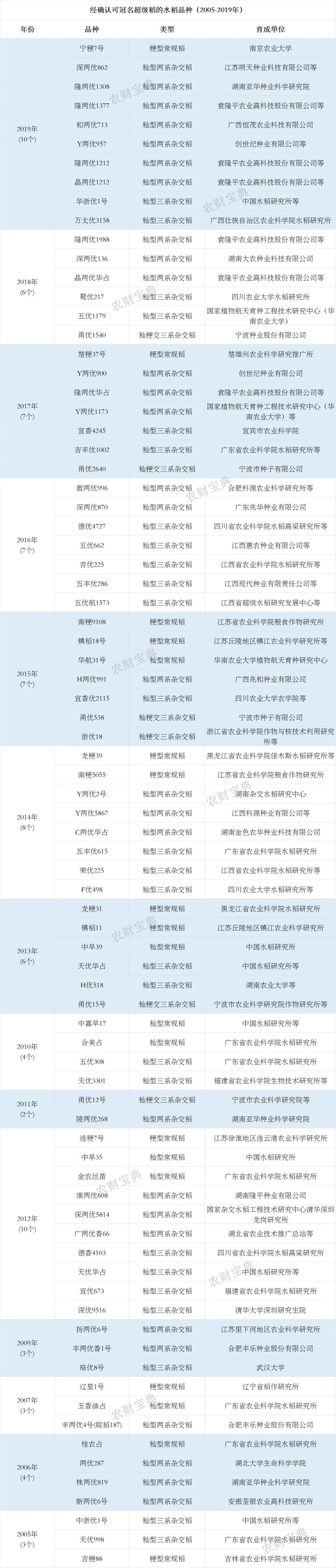 2005-2019年的超級稻品種名單↓↓
