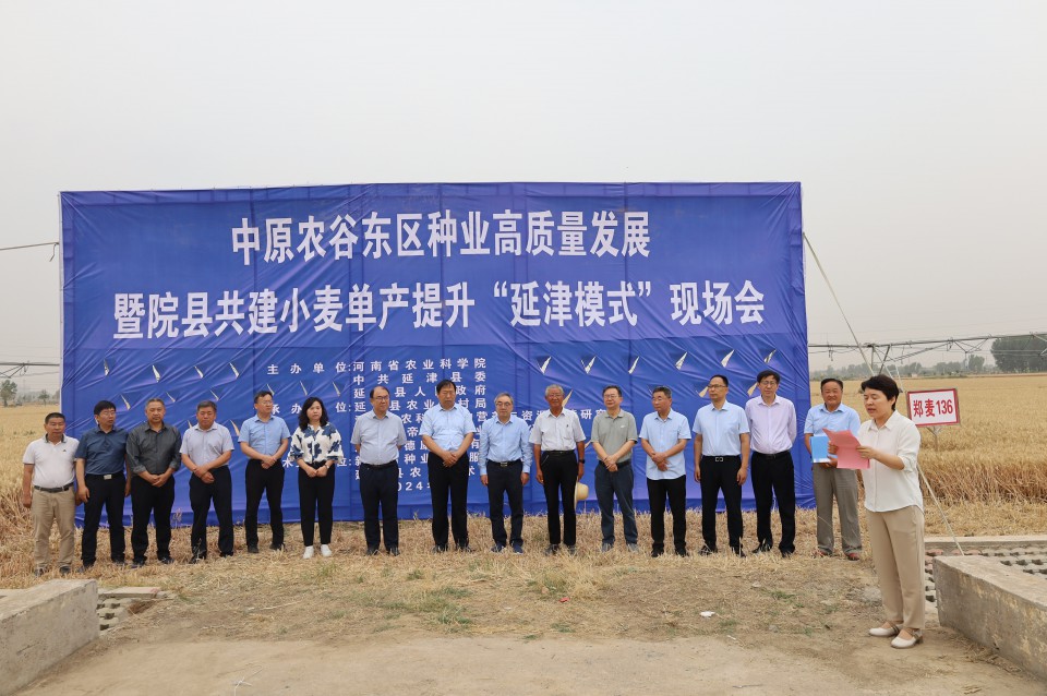 “三夏”時節(jié)麥?zhǔn)彰Α?月4日,在中原大地一片片金色的麥浪中,中原農(nóng)谷東區(qū)種業(yè)高質(zhì)量發(fā)展暨院縣共建小麥單產(chǎn)提升“延津模式”現(xiàn)場會在河南省延津縣高產(chǎn)試驗田內(nèi)召開,經(jīng)過工作人員現(xiàn)場實打驗收,兩塊試驗田小麥畝產(chǎn)分別以874.3公斤、875.2公斤,再次亮相我國冬小麥高產(chǎn)紀(jì)錄榜單。