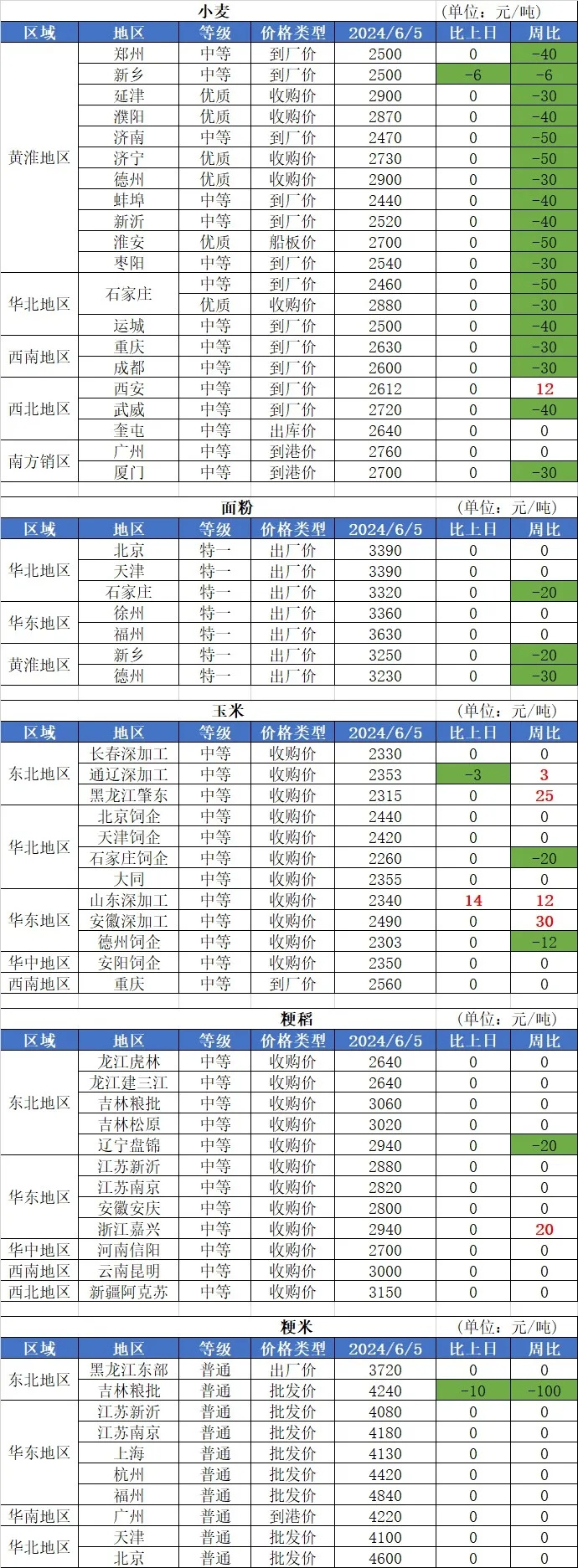 2、6月5日國內(nèi)玉米價(jià)格穩(wěn)中有漲,其中:南方銷區(qū)、南北港口、東北地區(qū)玉米價(jià)格基本穩(wěn)定;東北地區(qū)玉米價(jià)格基本穩(wěn)定,局部價(jià)格小幅上漲,漲幅10元/噸。