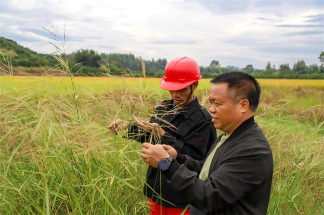 廣西象州的農(nóng)業(yè)技術(shù)人員正在查看野生稻的生長情況,野生稻資源很少,屬于國家二級保護(hù)植物,而且是水稻雜交育種中最為重要的材料。(圖片來源:廣西壯族自治區(qū)農(nóng)業(yè)農(nóng)村廳)