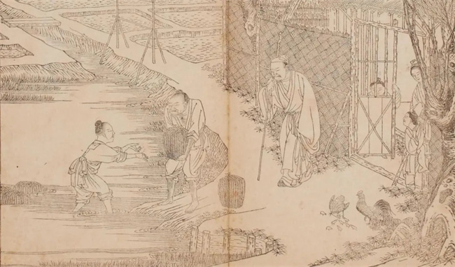 清嘉慶年間刊刻佩文齋耕織圖中的“浸種”圖(圖片來源:東京國立博物館)