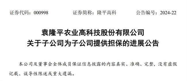 6月3日,袁隆平農業(yè)高科技股份有限公司(下稱“隆平高科”)發(fā)布公告稱,子公司隆平發(fā)展為子公司隆平巴西提供擔保。