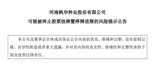 楓華種業(yè):公司股票存在被終止掛牌的風險