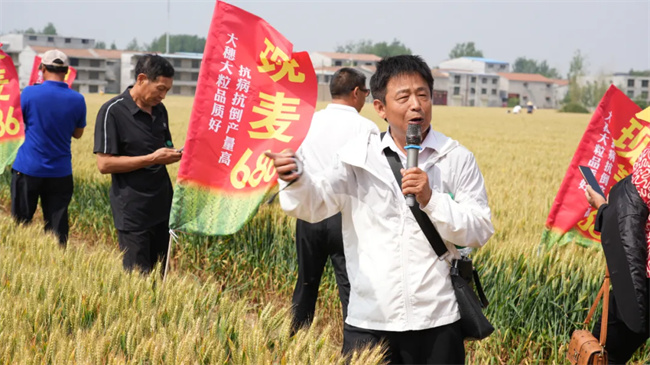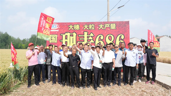“現(xiàn)麥686”觀摩田塊,一株株微黃的麥穗散發(fā)陣陣麥香。觀摩現(xiàn)場(chǎng),參會(huì)人員聽(tīng)取了技術(shù)人員栽培管理和品種特征特性的介紹,查看了品種綜合長(zhǎng)勢(shì),并從布點(diǎn)示范種植表現(xiàn)情況、品種宣傳推廣、市場(chǎng)銷(xiāo)售管理等方面作了充分的交流討論,并提出了寶貴的建議。“現(xiàn)麥686”布點(diǎn)示范實(shí)際表現(xiàn)出的豐產(chǎn)性、綜合抗病性得到了在場(chǎng)人員一致好評(píng)。與會(huì)經(jīng)銷(xiāo)商表示有信心將該品種推向市場(chǎng),實(shí)現(xiàn)大賣(mài)。