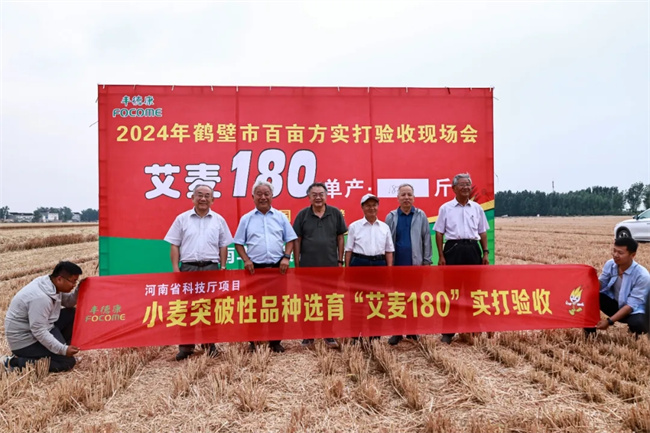 2024年6月6日,由農(nóng)業(yè)農(nóng)村部小麥專家指導(dǎo)組、河南省農(nóng)業(yè)技術(shù)推廣總站和鶴壁市農(nóng)業(yè)農(nóng)村局等單位組成的專家組,對(duì)河南省鶴壁市城鄉(xiāng)一體化示范區(qū)王寨村的百畝方種植的艾麥180優(yōu)質(zhì)小麥新品種進(jìn)行實(shí)打驗(yàn)收,單產(chǎn)912.6公斤/畝,創(chuàng)下今年以來全國小麥高產(chǎn)新紀(jì)錄!