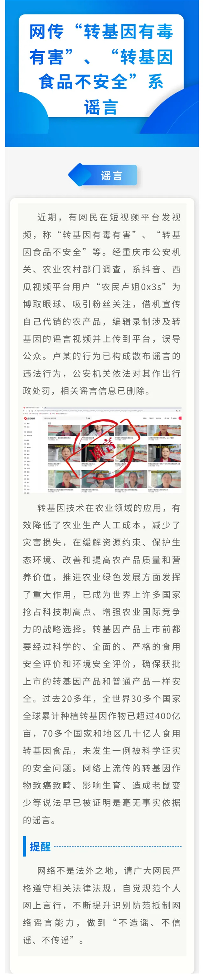 網(wǎng)傳“轉(zhuǎn)基因有毒有害”、“轉(zhuǎn)基因視頻不安全”系謠言