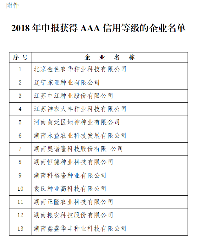 附件:2018年申報(bào)獲得AAA信用等級(jí)的企業(yè)名單