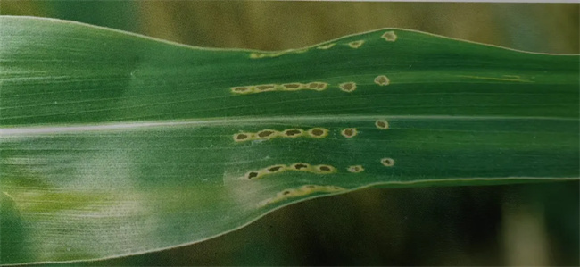 5、生物防治:每年4月中旬至5月初越冬幼蟲(chóng)化蛹前,用白僵菌孢子粉對(duì)燒剩的寄主作物秸稈、根茬進(jìn)行噴粉封垛,菌粉用量為100g/m³,垛面每平方米噴1個(gè)點(diǎn),至垛面可見(jiàn)菌粉即可。或心葉中期將含菌量為100億—500億/g的白僵菌孢子粉0.5kg與skg過(guò)篩的煤渣拌勻,制成1:10白僵菌顆粒劑,按每株2g施入玉米心葉內(nèi)。用8000IU/mg蘇云金桿菌可濕性粉劑3kg/畝,同10kg細(xì)砂拌勻制成顆粒劑,在玉米心葉中期施用,防治效果較好。
