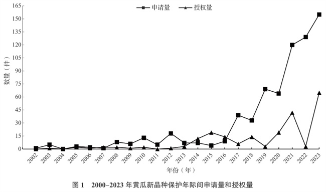 2.1黃瓜新品種保護年際間申請授權(quán)現(xiàn)狀