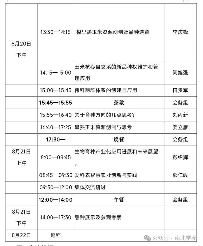 南北學(xué)院玉米育種交流研討會會務(wù)組