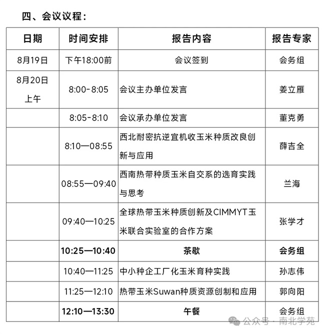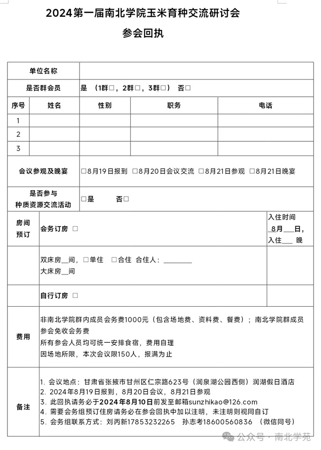 七、種質(zhì)資源交流:本次報(bào)名參會的育種家老師提供1-3份優(yōu)良自交系參與種質(zhì)資源交流活動,每個(gè)自交系分裝成160份,每份10粒種子并注明種質(zhì)來源及名稱,8月10日前郵寄到甘肅省農(nóng)科院(蘭州市安寧區(qū)農(nóng)科院新