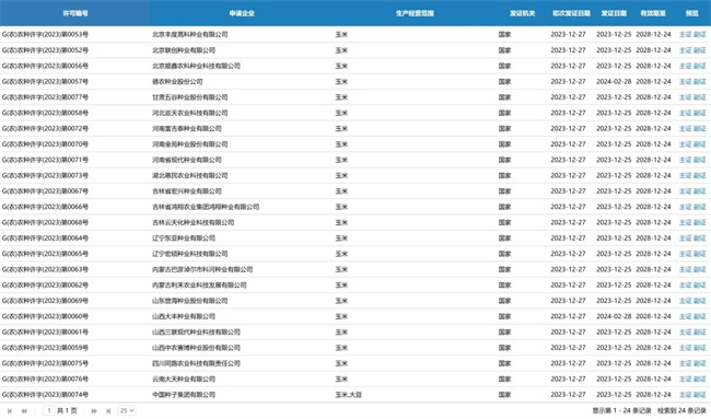 26家獲轉(zhuǎn)基因玉米或大豆種子生產(chǎn)經(jīng)營許可證的企業(yè)名單。