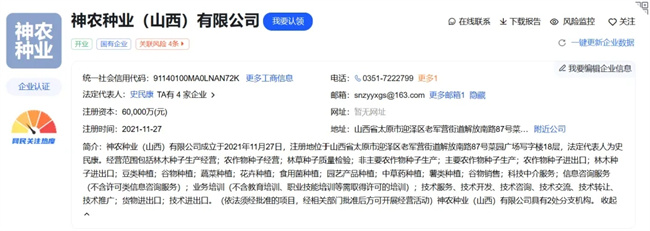 本次收購?fù)瓿珊?,中農(nóng)賽博種業(yè)有民營企業(yè)變?yōu)閲锌毓善髽I(yè)。收購中農(nóng)賽博種業(yè)的神農(nóng)種業(yè)(山西)有限公司,成立于2021年,注冊(cè)資本6億元,隸屬于神農(nóng)科技集團(tuán)有限公司。