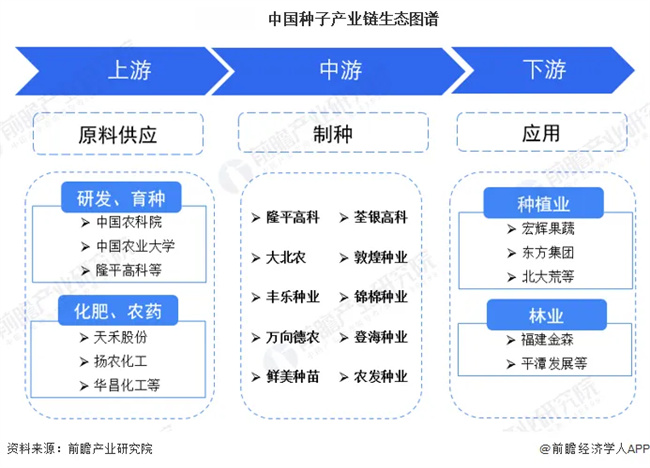 生物育種技術(shù)位于產(chǎn)業(yè)鏈上游環(huán)節(jié)。前瞻產(chǎn)業(yè)研究院通過對種子產(chǎn)業(yè)進(jìn)行剖析發(fā)現(xiàn):行業(yè)上游種子研發(fā)機(jī)構(gòu)包括中國農(nóng)業(yè)大學(xué)、中國農(nóng)業(yè)科學(xué)院、隆平高科等;中游種子生產(chǎn)企業(yè)主要包括隆平高科、登海種業(yè)、豐樂種業(yè)、萬向德農(nóng)、荃銀高科等;下游種植業(yè)企業(yè)主要包括東方集團(tuán)、宏輝果蔬等,林業(yè)企業(yè)包括福建金森、平潭發(fā)展等。