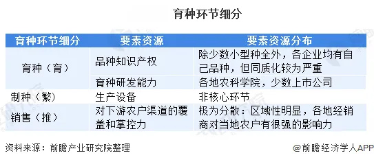 種子產(chǎn)業(yè)鏈可以具體細(xì)分為育種、制種以及銷售,即育、繁、推三個(gè)環(huán)節(jié)。從前的計(jì)劃經(jīng)濟(jì)體制使我國種業(yè)的三個(gè)環(huán)節(jié)非常獨(dú)立:由科研院所負(fù)責(zé)育種,由種子企業(yè)進(jìn)行制種,最后由各地種子站進(jìn)行銷售。但自2000年種子法出臺(tái)后,上述情況稍有改變,產(chǎn)業(yè)分工不再那么明確。其中,育種環(huán)節(jié)為產(chǎn)業(yè)鏈核心,品種的知識(shí)產(chǎn)權(quán)以及育種研發(fā)能力為環(huán)節(jié)核心要素。此外,銷售環(huán)節(jié)的重要性不可小覷。由于種業(yè)銷售終端的區(qū)域分散和種植戶的信息不對稱,經(jīng)銷商的下游掌控力和議價(jià)能力比一般行業(yè)要強(qiáng)得多。因而,從產(chǎn)業(yè)鏈價(jià)值分布來看,銷售渠道環(huán)節(jié)要分去近50%的利潤。