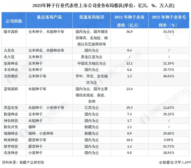 通過企查貓企業(yè)數(shù)據(jù)信息,種子相關(guān)上市公司重點(diǎn)布局玉米種子、水稻種子等產(chǎn)品;渠道方面,隆平高科、荃銀高科等國內(nèi)外渠道均有布局,而北大荒、蘇墾農(nóng)發(fā)等企業(yè)主要銷售市場為所在省份,大北農(nóng)、豐樂種業(yè)、敦煌種業(yè)等主要在國內(nèi)布局。