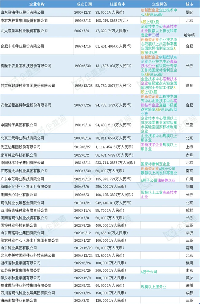 那么,當(dāng)下國內(nèi)主要生物育種行業(yè)中企業(yè)分布如何呢?前瞻產(chǎn)業(yè)招商小組通過成立時(shí)間、注冊資本、企業(yè)標(biāo)簽等多個(gè)維度選取了以下30家企業(yè):(以下排名不分先后)