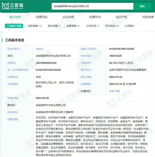 據(jù)企查貓數(shù)據(jù)顯示,荃銀高科在新疆、四川、遼寧、湖北、廣西、安徽、江西、上海均布局有子公司,其中,安徽是公司的重點(diǎn)布局地,共擁有12家子公司,主要涉及種子的技術(shù)研發(fā)和生產(chǎn)經(jīng)營業(yè)務(wù)。
