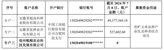 據(jù)公告,荃銀高科最近與全資子公司荃優(yōu)種業(yè)、全資孫公司宿州糧順、中國工商銀行股份有限公司合肥科技支行及國元證券股份有限公司簽訂了《募集資金三方監(jiān)管協(xié)議》。協(xié)議規(guī)定,公司的兩個(gè)募集資金專用賬戶以及荃優(yōu)種業(yè)的一個(gè)募集資金專用賬戶余額將專用于“青貯玉米品種產(chǎn)業(yè)化及種養(yǎng)結(jié)合項(xiàng)目”,不得用于其他用途,并受三方監(jiān)管。