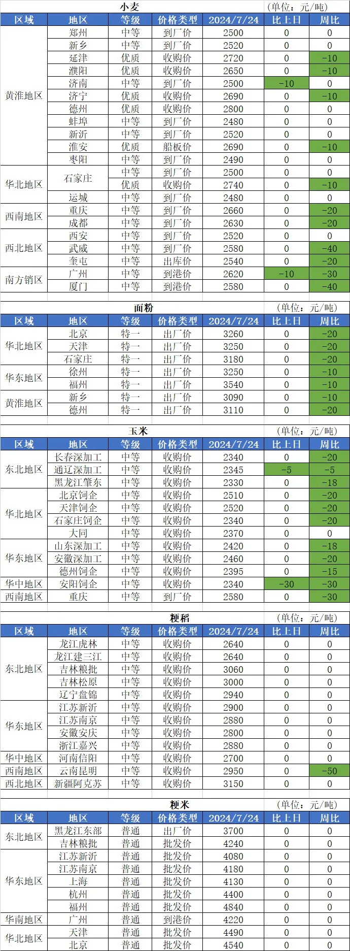 1、7月24日小麥市場穩(wěn)中偏弱,局部跌幅在3-5厘。其中,周口五得利跌5厘,報價1.245元/斤;遂平五得利跌5厘,報價1.245元/斤;臨沂五得利跌5厘,報價1.26元/斤;華升面粉跌5厘,報價1.255元/斤;單縣飛翔面粉跌3厘,報價1.257元/斤。