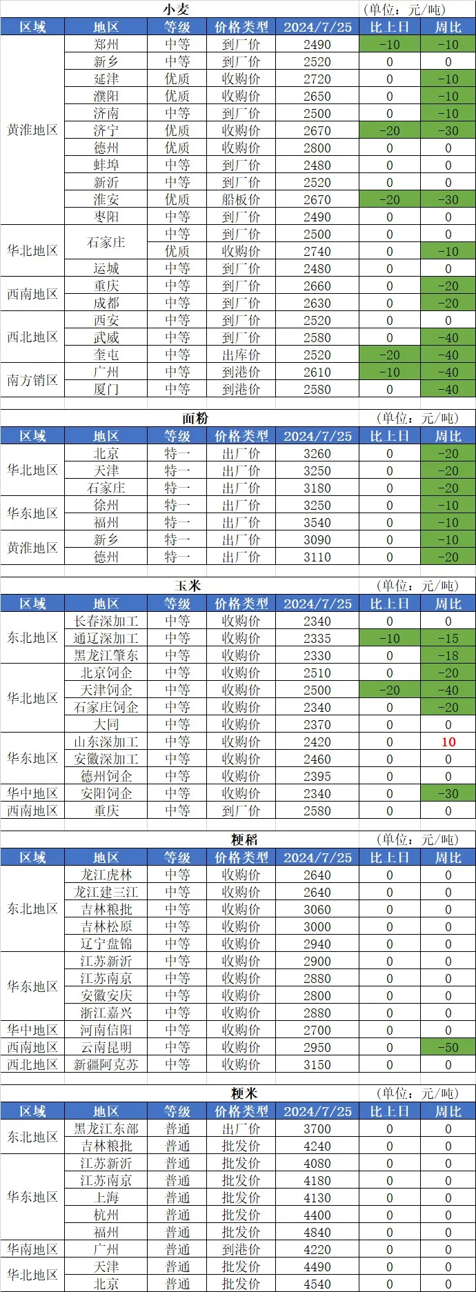 1、持續(xù)降雨使小麥儲存難度加大,儲存條件差的農(nóng)戶與小型貿(mào)易商出售小麥意愿增強,短期區(qū)域性上量增加,給當?shù)刂品燮髽I(yè)帶來壓價機會,預計近期小麥價格將延續(xù)小幅震蕩調(diào)整。
