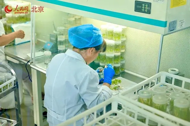 工作人員正在對“太空種子”進(jìn)行切苗配苗。人民網(wǎng) 李世奇攝