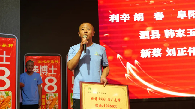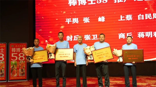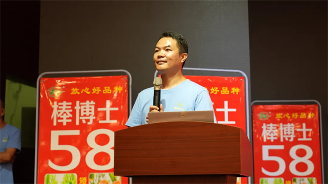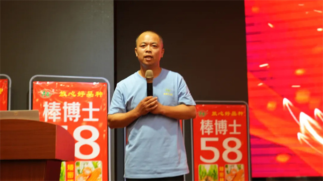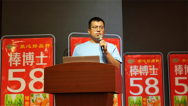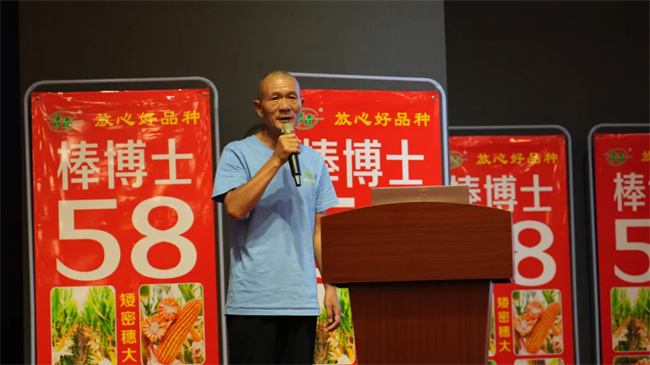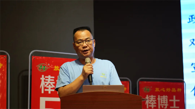 會(huì)上,棒博士系列品種育種人王永普在致辭中感謝各位伙伴多年來的鼎力支持和精誠合作。他說,公司育種團(tuán)隊(duì)經(jīng)過30多年的育種經(jīng)驗(yàn)沉淀和積累,以棒博士58為代表的優(yōu)勢品種橫空出世,同時(shí)在繼棒博士58之后,公司一批抗銹、抗抗莖腐病更強(qiáng)、根系更加發(fā)達(dá)、籽粒更深更大、豐產(chǎn)性和穩(wěn)產(chǎn)性更好的玉米新品種也將精彩亮相,開創(chuàng)“矮密穗大”玉米品種新時(shí)代。同時(shí),他表示,2024—2025年度,公司將拿出980萬元獎(jiǎng)勵(lì)資金,激勵(lì)更多的伙伴業(yè)績?cè)龠~一大步,早日實(shí)現(xiàn)棒博士58千萬畝目標(biāo)任務(wù),也希望各位伙伴以此次活動(dòng)為契機(jī),堅(jiān)定信念、齊心協(xié)力、把握機(jī)遇,再創(chuàng)佳績!