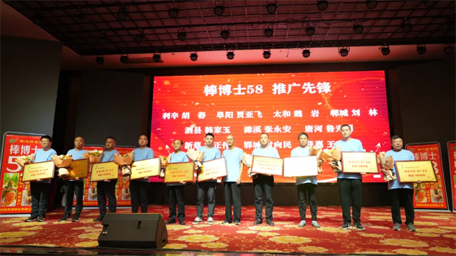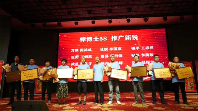 會(huì)議現(xiàn)場,公司共設(shè)推廣新銳、推廣先鋒、推廣之星、市場標(biāo)桿和王者之師五大獎(jiǎng)項(xiàng),對(duì)在棒博士58推廣過程中表現(xiàn)突出、遵守市場管理規(guī)定、宣傳工作做得好、宣傳熱情度高、積極配合公司各項(xiàng)工作、具有奉獻(xiàn)精神和不怕吃虧的先進(jìn)工作者給予獎(jiǎng)勵(lì)。