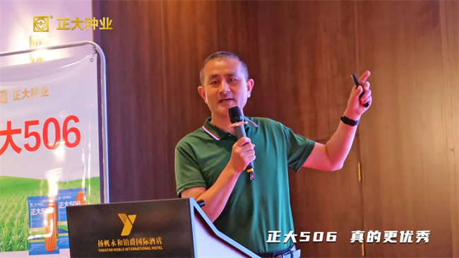 在隨后的室內(nèi)會(huì)議上,襄陽(yáng)正大種業(yè)股份有限公司總經(jīng)理紀(jì)濤做主題報(bào)告,介紹正大506品種選育及公司發(fā)展規(guī)劃。