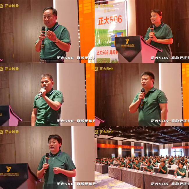 滑縣綠華源有限公司總經(jīng)理呂紹經(jīng)、商丘市華菲種業(yè)總經(jīng)理王菲、??h瑞豐農(nóng)資有限公司總經(jīng)理付愛(ài)國(guó)、周口市潤(rùn)豐農(nóng)業(yè)總經(jīng)理王如意、滑縣留固鎮(zhèn)經(jīng)銷商常俊華依次登臺(tái)做分享,紛紛表示未來(lái)將繼續(xù)與正大種業(yè)攜手共贏,借正大506乘風(fēng)破浪,一起駛向更加美好的明天。