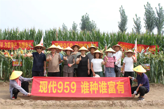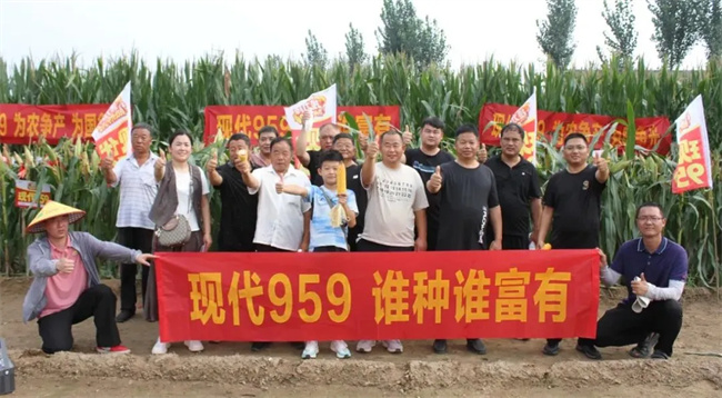 觀摩田內(nèi),現(xiàn)代959綜合表現(xiàn)一如既往優(yōu)秀,獲得現(xiàn)場觀摩代表一致好評和高度認(rèn)可。他們均表示,現(xiàn)代959株高矮,穗位低,抗倒好;綜合抗病好,耐高溫干旱、陰雨寡照能力強,品質(zhì)優(yōu),產(chǎn)量高,很受歡迎,特受種地大戶喜歡?;厝ズ螅瑢⒗^續(xù)加大宣傳力度和做好觀摩示范,讓更多農(nóng)戶知道、認(rèn)識和喜歡上這個品種,提高現(xiàn)代959的影響力和美譽,讓優(yōu)良品種惠及更多農(nóng)戶。