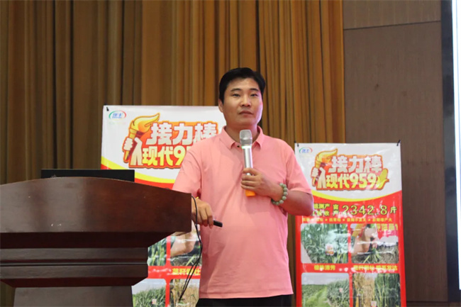 現(xiàn)代種業(yè)地利事業(yè)部袁鋒經(jīng)理分享接力棒現(xiàn)代959品種優(yōu)勢和營銷規(guī)劃,解讀2024——2025年度有關(guān)營銷政策。