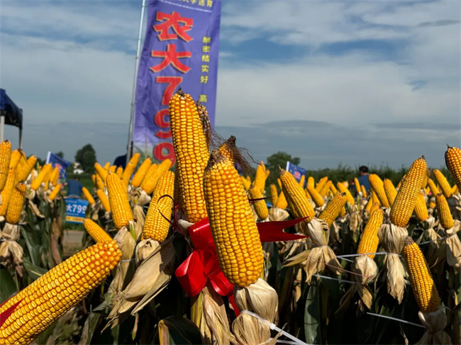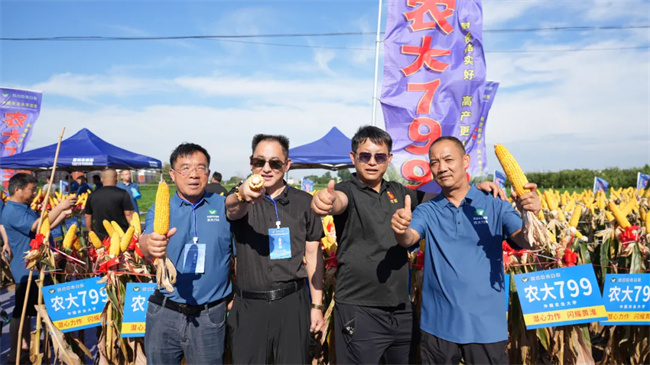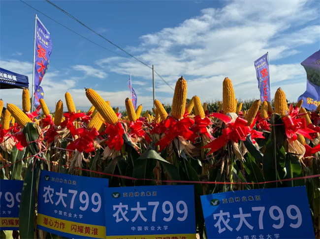 其中,由中國農(nóng)業(yè)大學(xué)選育的農(nóng)大799,一代雜交種,組合為S2458×N829。母本S2458是浚248/鄭58為基礎(chǔ)材料選育;父本N829是X1132X為基礎(chǔ)材料選育,基因好,抗病抗倒強(qiáng),高產(chǎn)、廣適;株型緊湊,田間通風(fēng)透光好,利于光合作用,積累干物質(zhì)能力強(qiáng);區(qū)域試驗(yàn)結(jié)果:株高259厘米,穗位90厘米,倒伏率1.2%、倒折率0.0%,果穗筒形。2021年經(jīng)山東農(nóng)業(yè)大學(xué)植物保護(hù)學(xué)院抗病性接種鑒定:抗小斑病,中抗彎孢葉斑病、瘤黑粉病、莖腐病。