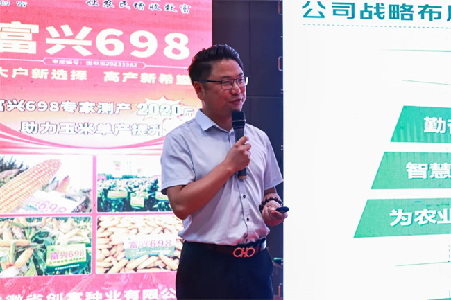 在多年多地種植表現(xiàn)來(lái)看,富興698綜合抗病好,強(qiáng)抗倒,抗逆強(qiáng)、結(jié)實(shí)性好,高產(chǎn)穩(wěn)產(chǎn),種植密度可塑性好,品質(zhì)優(yōu)的六大優(yōu)勢(shì)獲得廣大農(nóng)戶的認(rèn)可和喜愛(ài),及經(jīng)銷(xiāo)商放心大膽推廣。會(huì)上,創(chuàng)富種業(yè)富興玉米團(tuán)隊(duì)負(fù)責(zé)人張澤記圍繞當(dāng)前玉米生產(chǎn)現(xiàn)狀、生產(chǎn)中存在的主要問(wèn)題及解決措施,分享了如何充分發(fā)揮富興698六大優(yōu)勢(shì),布局重點(diǎn)市場(chǎng),打造優(yōu)勢(shì)示范區(qū)域,進(jìn)一步提高影響力。同時(shí),他說(shuō),希望大家繼續(xù)以飽滿的熱情,加大品種宣傳力度,讓優(yōu)良品種惠及到更多的農(nóng)民朋友!